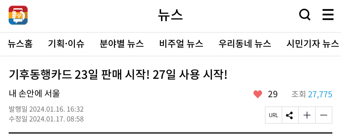 기후동행카드 보도자료 (출처 : 내 손 안에 서울)